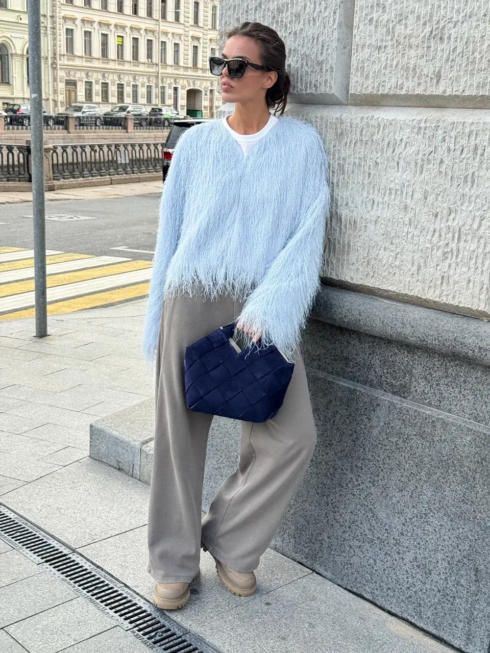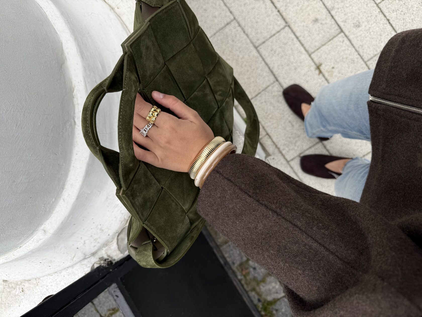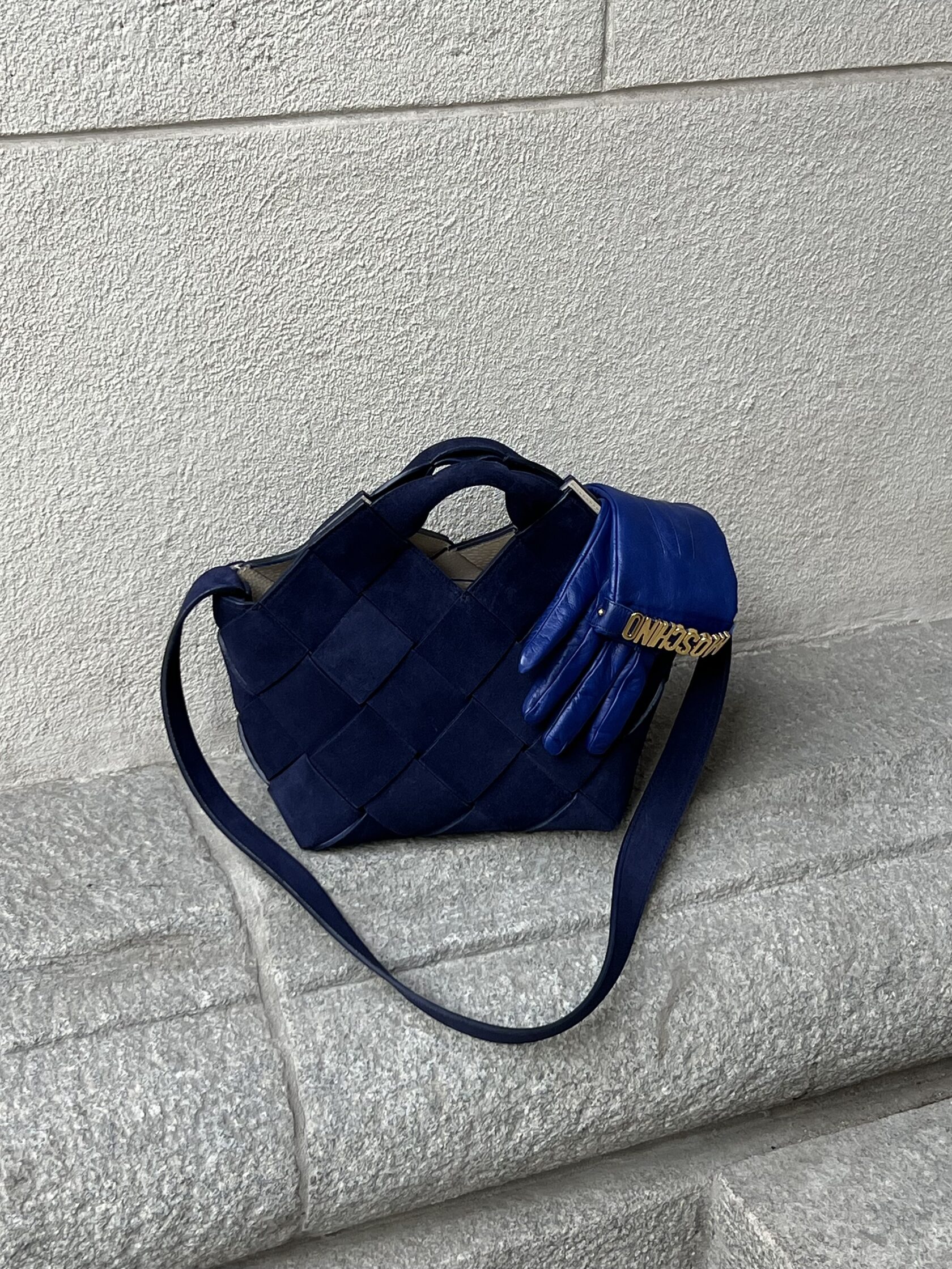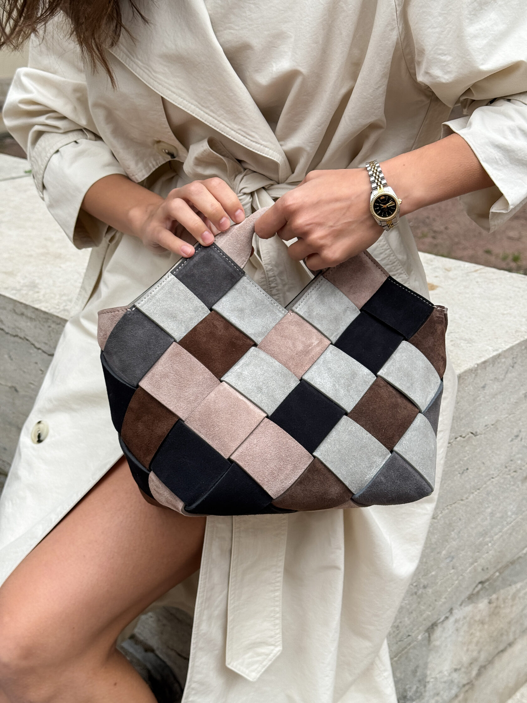 Сумка-корзина в технике ручного плетения из натуральной замши. Закрывается на скрытые магниты, внутри отделение с отделкой подкладочной кожей, в комплекте съемный плечевой ремень.