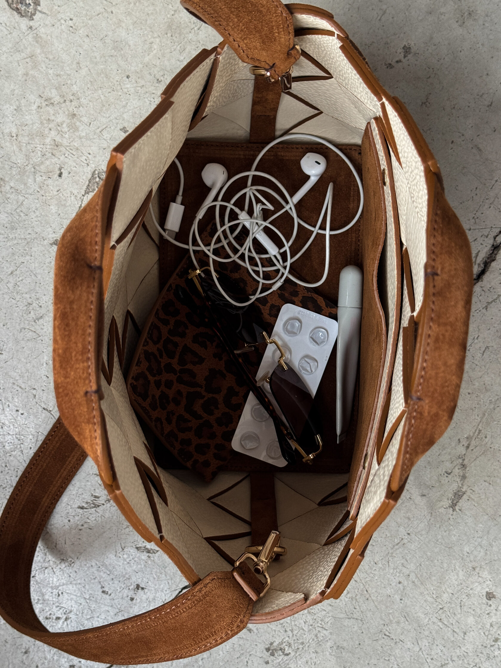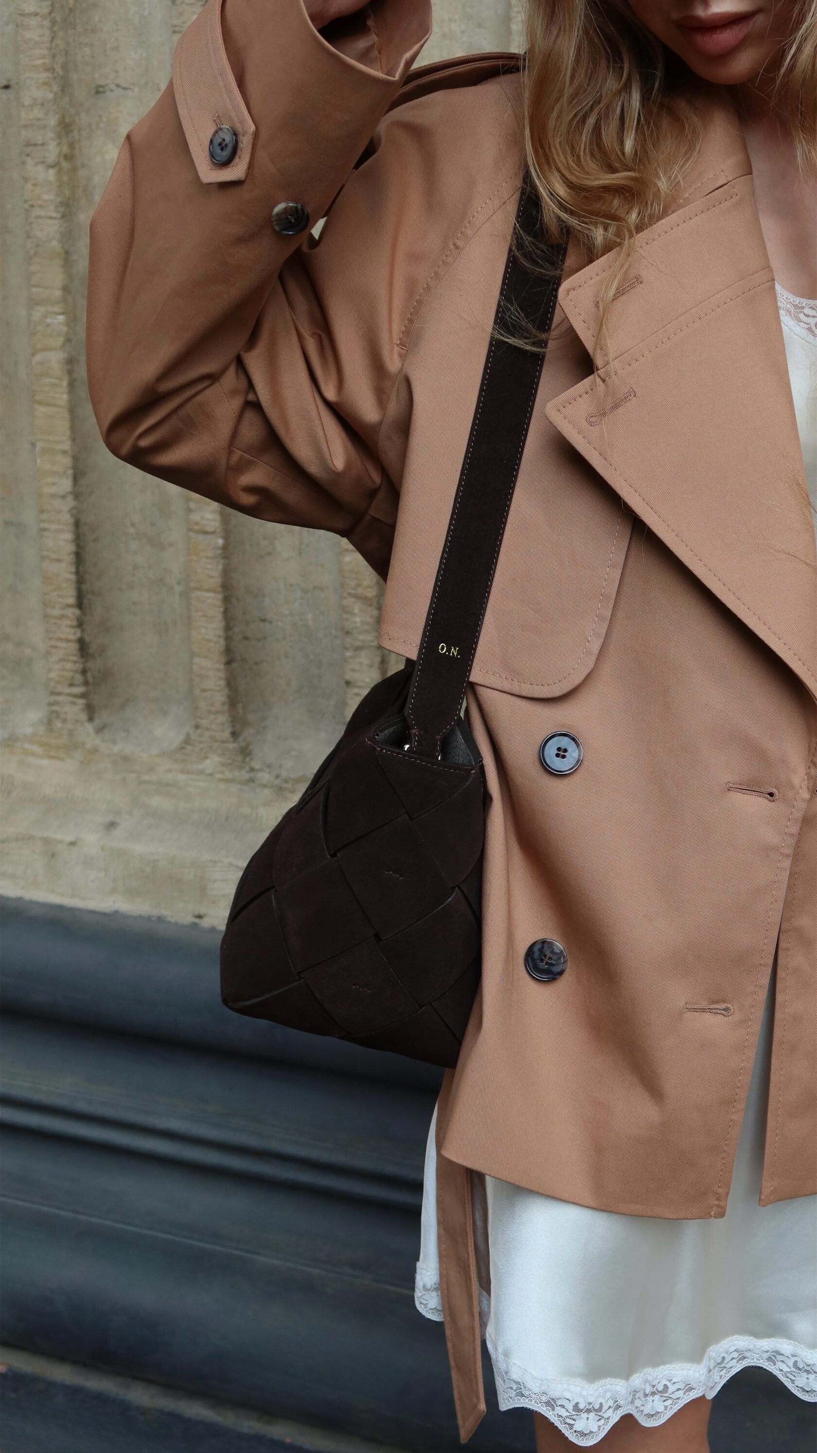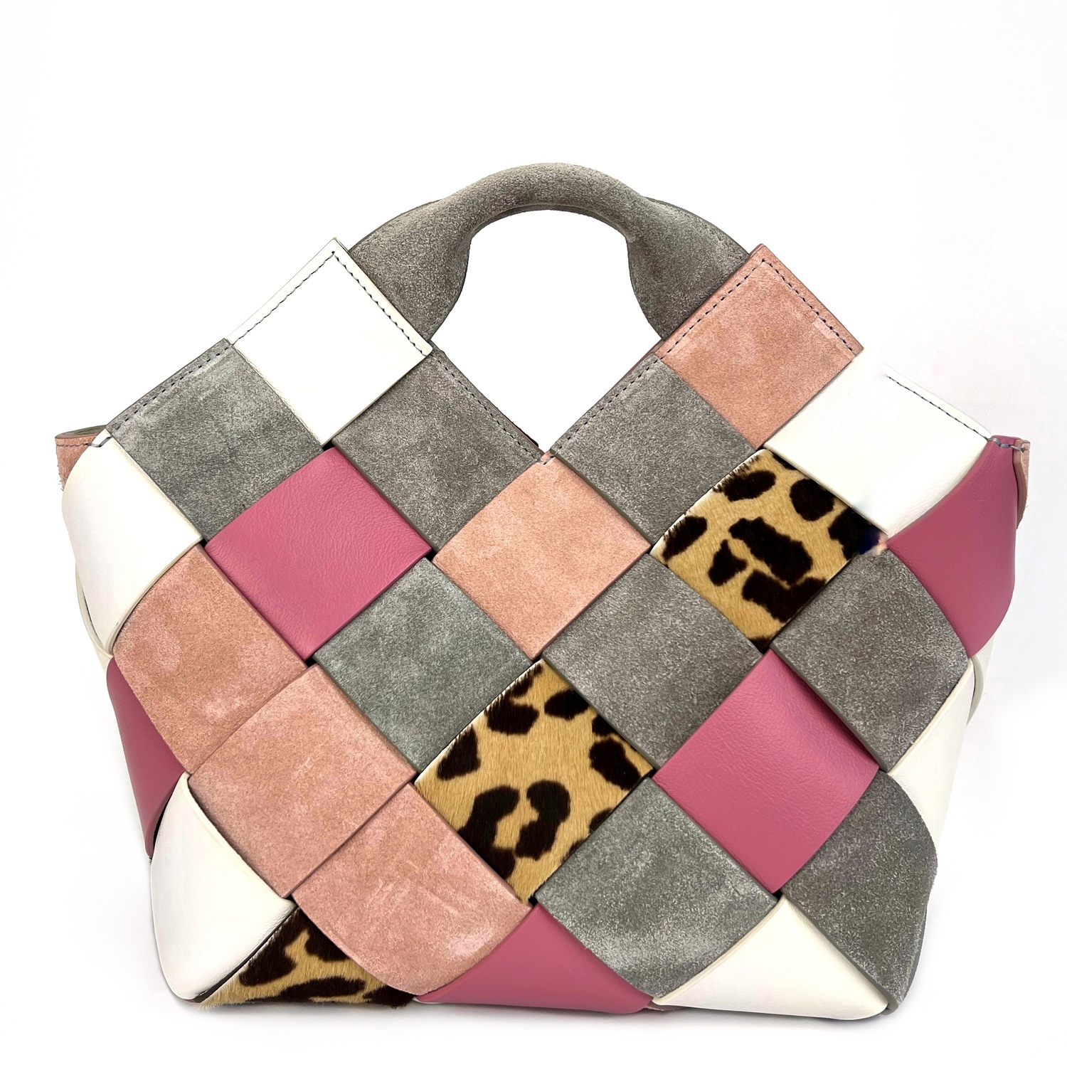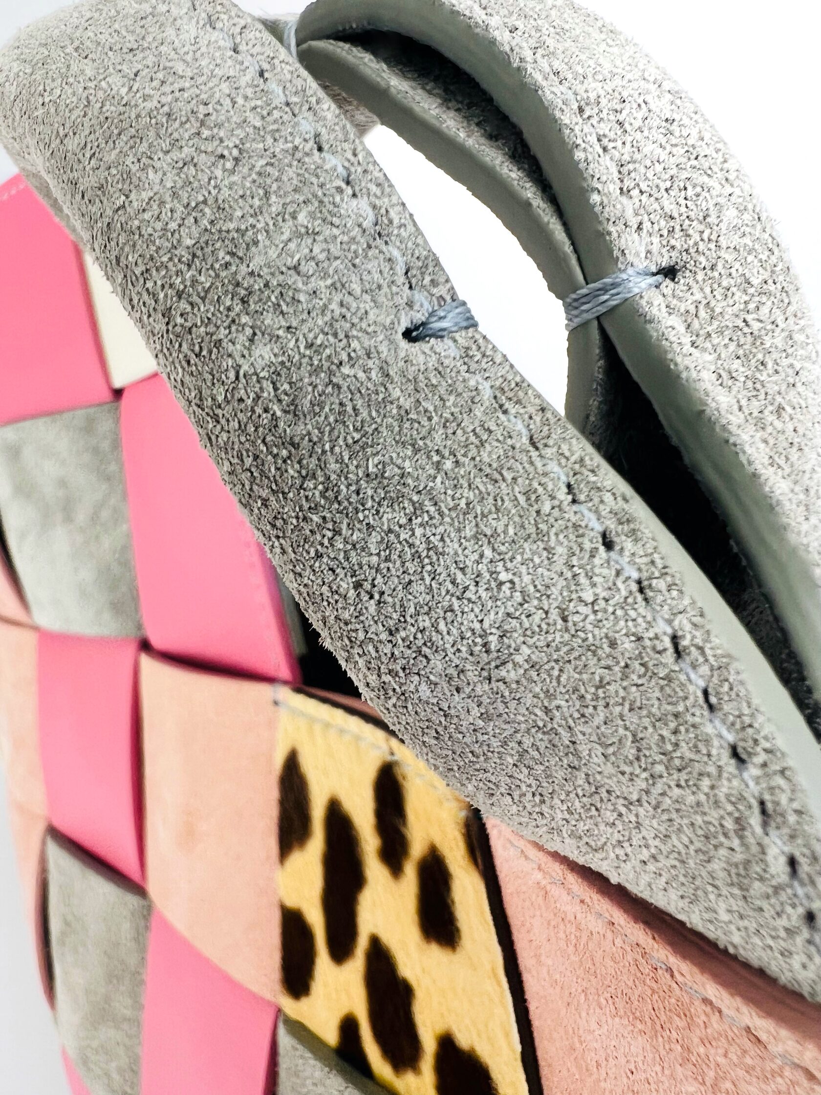 Сумка-корзина в самом маленьком размере. Вмещает телефон, салфетки, портмоне и разные мелочи. Внутри отделение с отделкой натуральной подкладочной кожей, кожаный карман и усиленное дно. Ремень съемный, с возможностью регулировки.