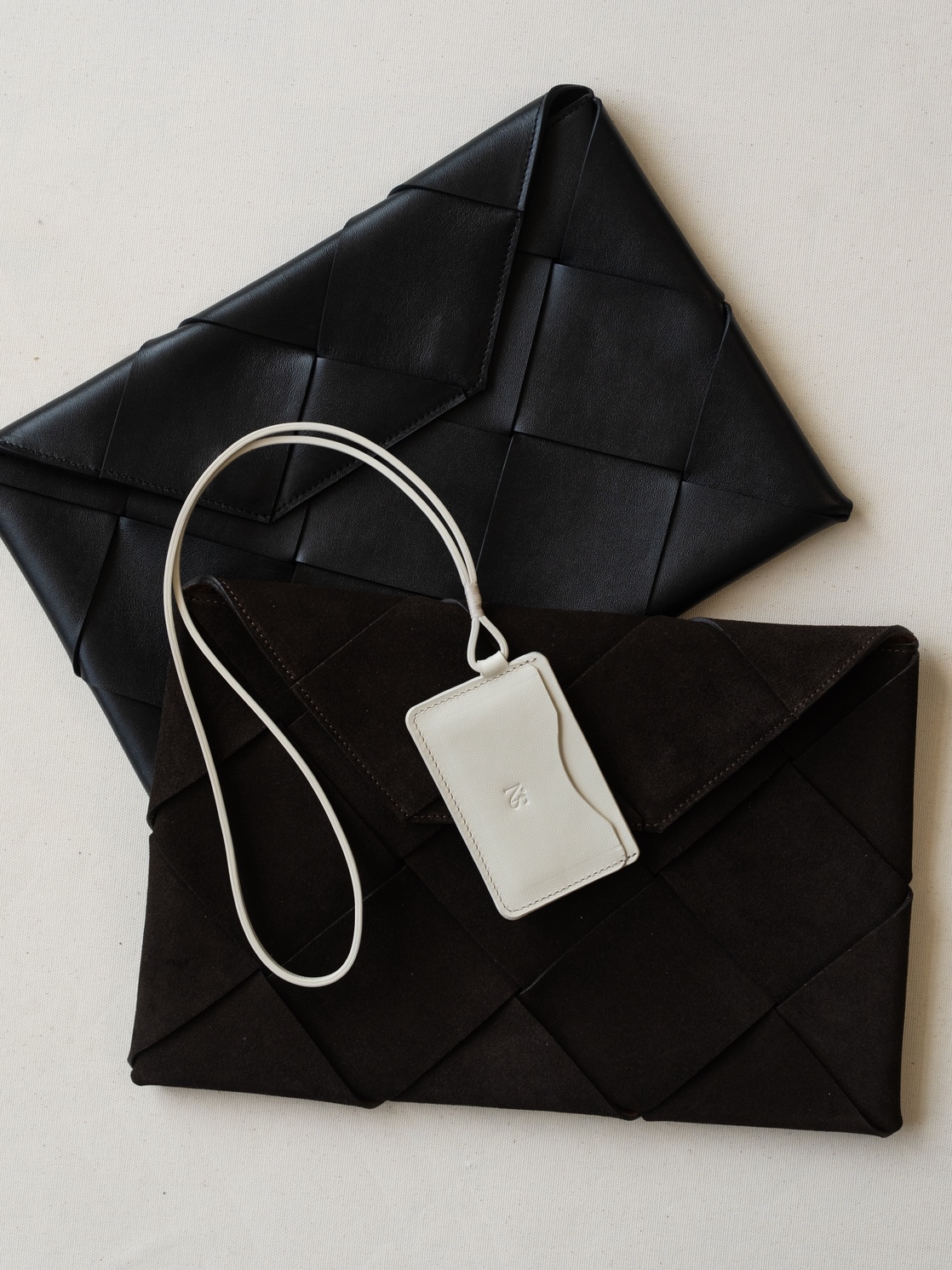 На кармашке с фигурным вырезом нанесён наш логотип методом бесцветного тиснения.