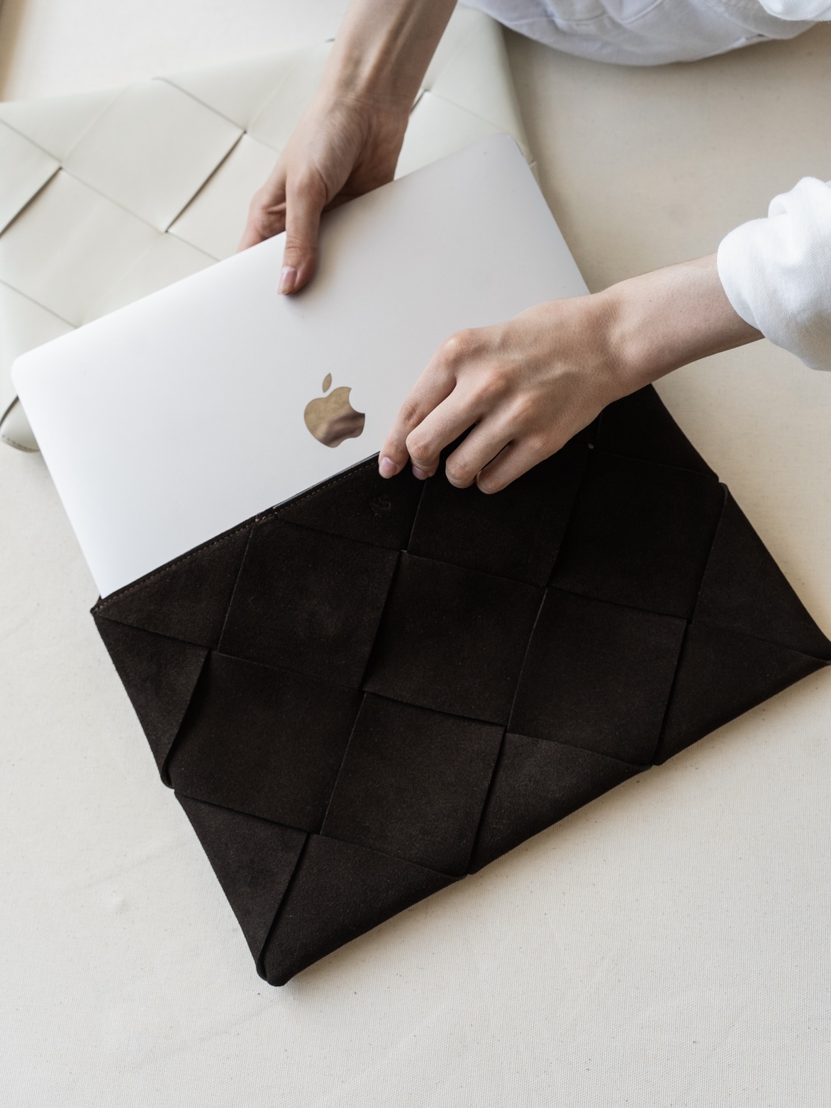 Чехол для ноутбука в технике плетения может быть выполнен в любом цвете из нашей палитры и в любом подходящем размере — просто укажите в комментарии к заказу желаемый оттенок и параметры вашего ноутбука.