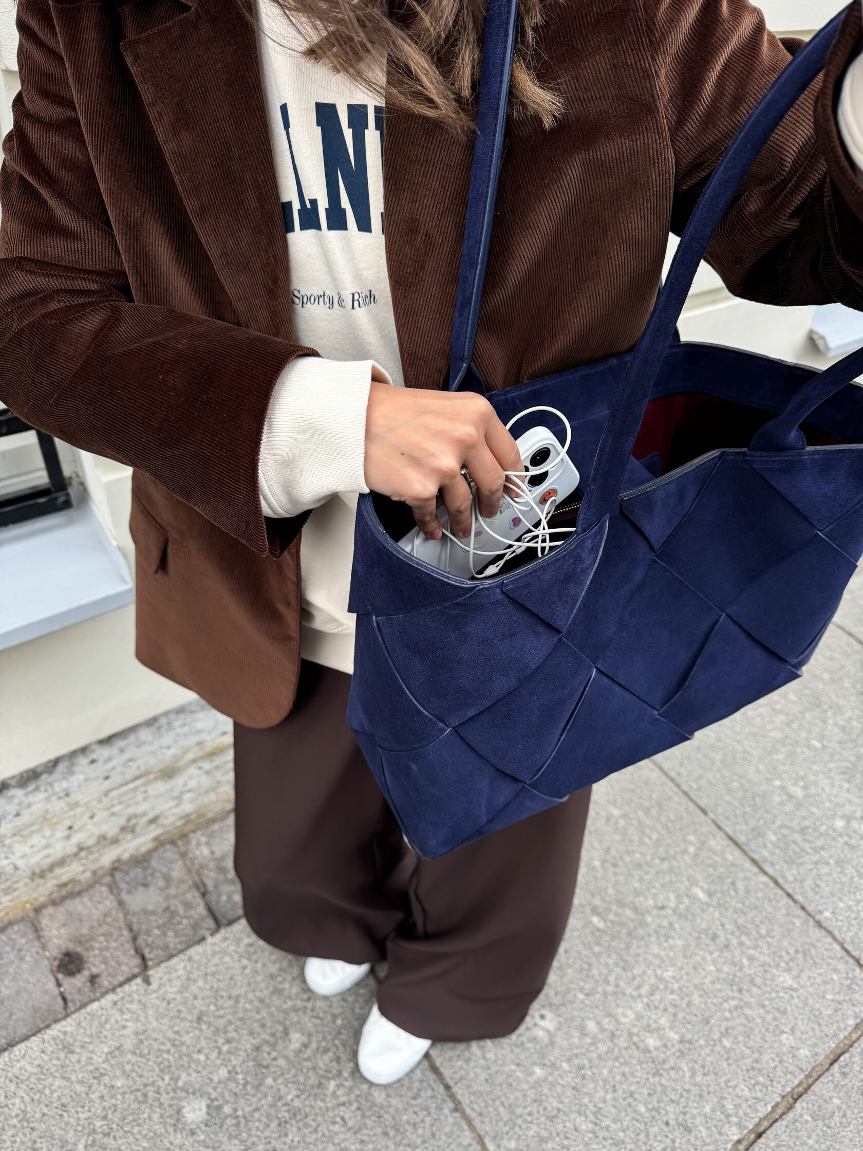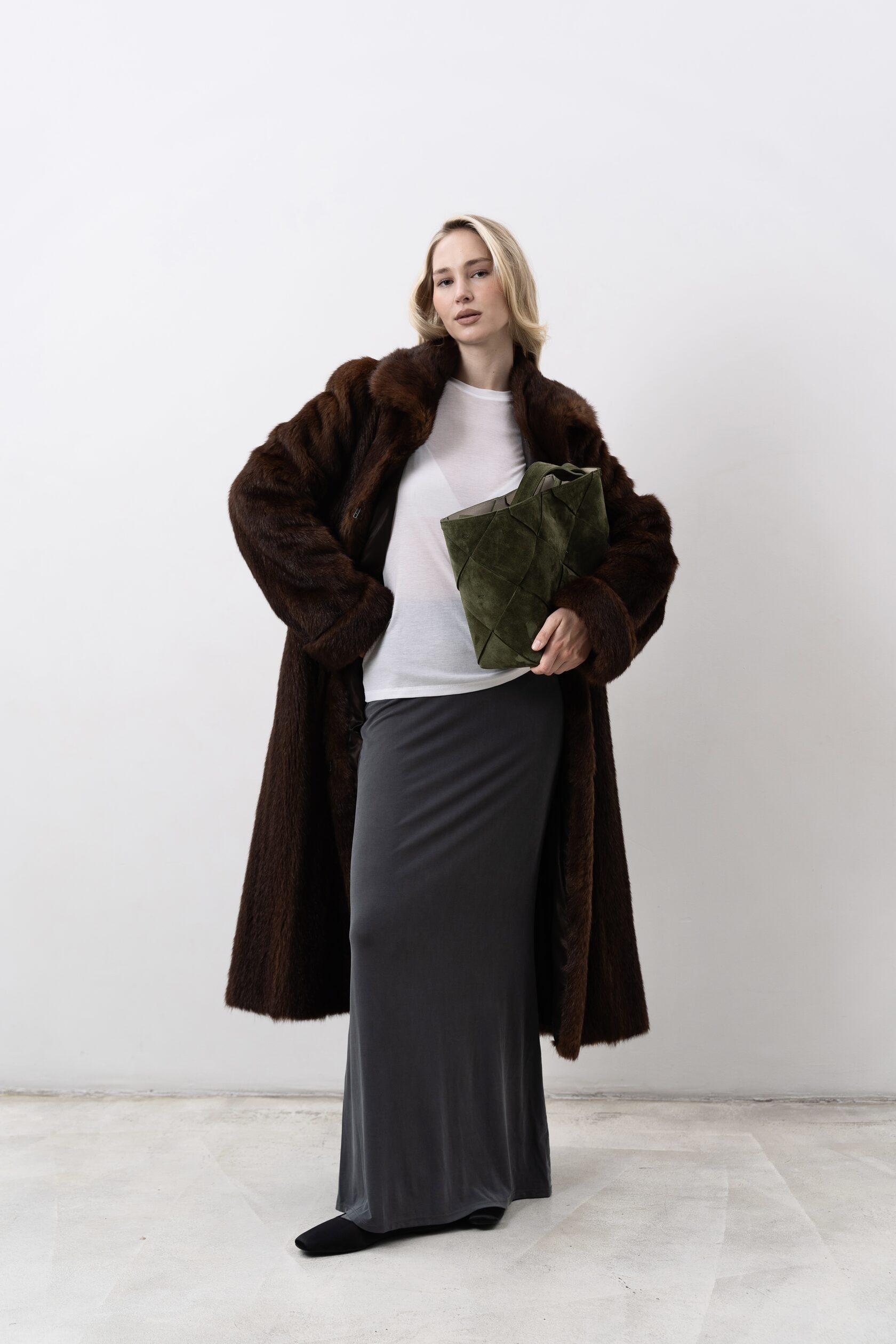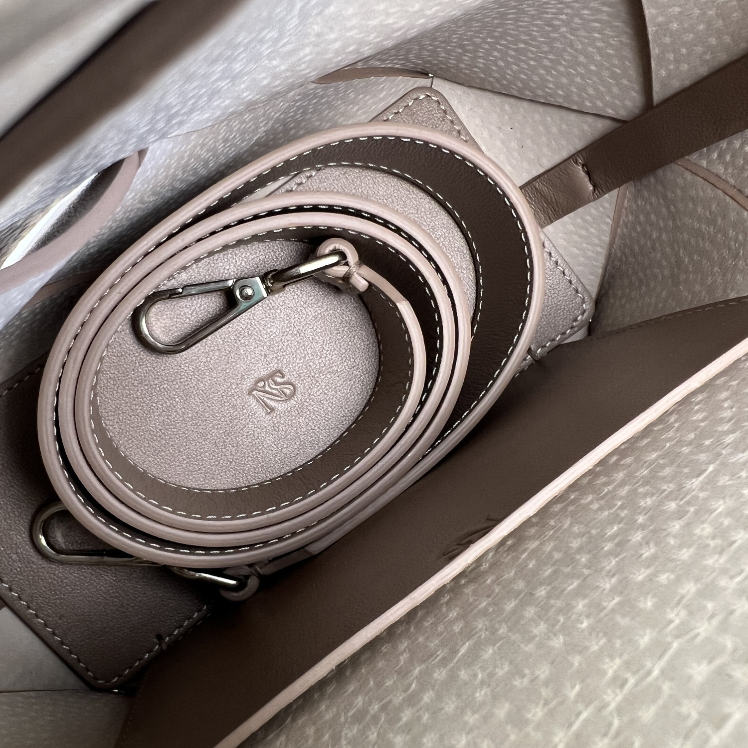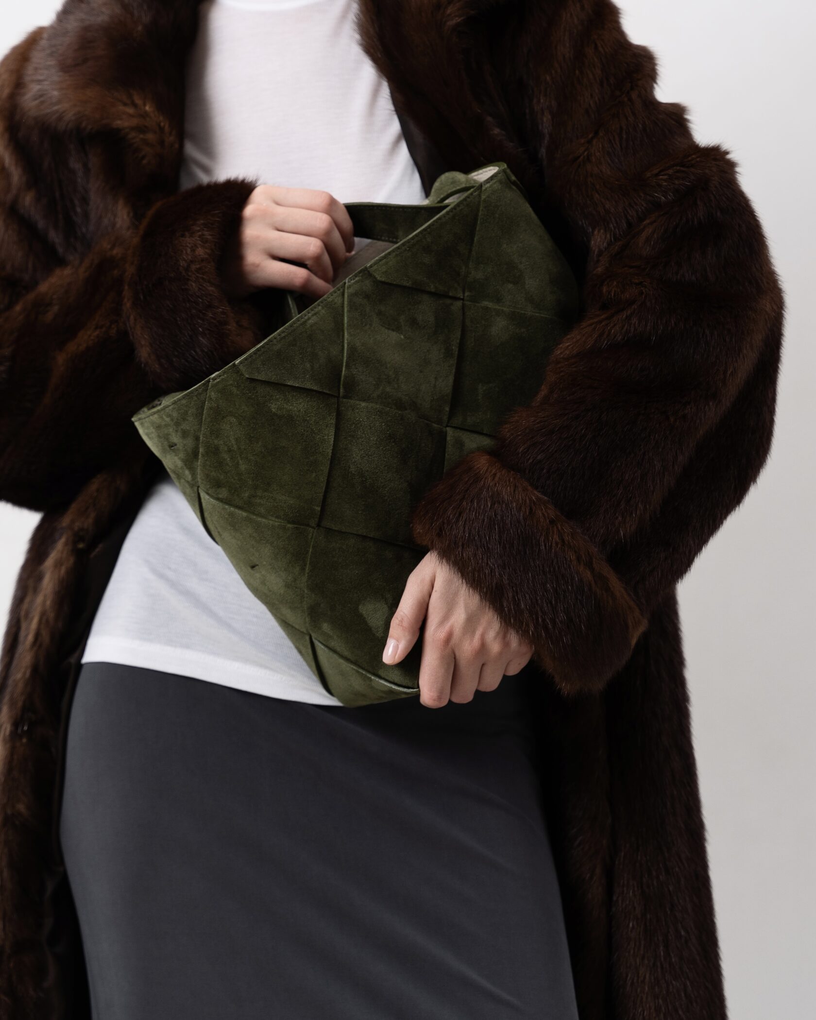 Новая увеличенная версия сумки Belts в технике ручного плетения из натуральной замши. Сумка удобно держится на плече благодаря удлиненным ручкам. Проблема веса крупных изделий решена тканевым подкладом, который облегчает их на 30%.